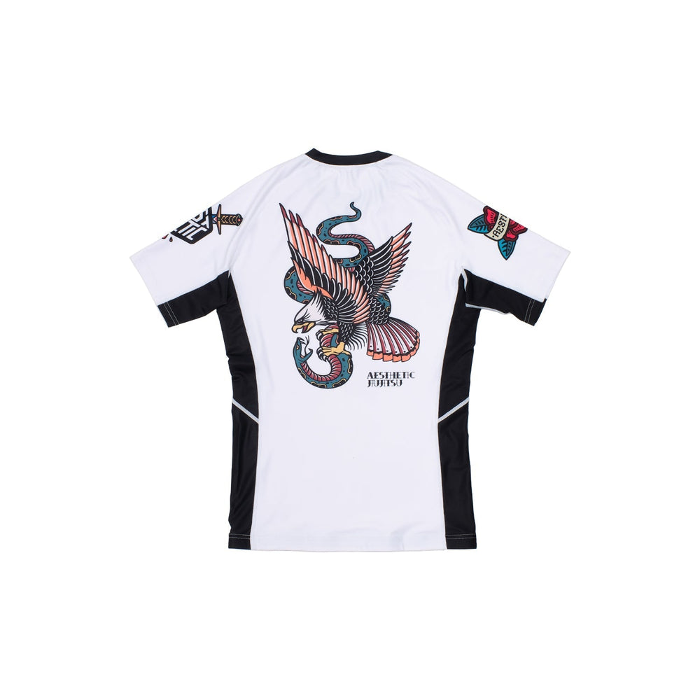 Inspired by traditional American tattoo art, the 'Old School' features hand-drawn artwork from our popular kimono series, this time in high-fidelity, sublimated goodness.